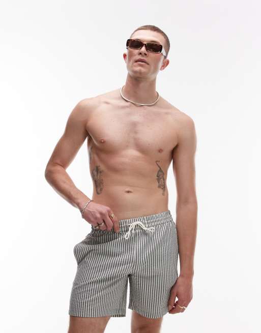 AllSaints - Warden - Short de bain à rayures - Blanc/bleu