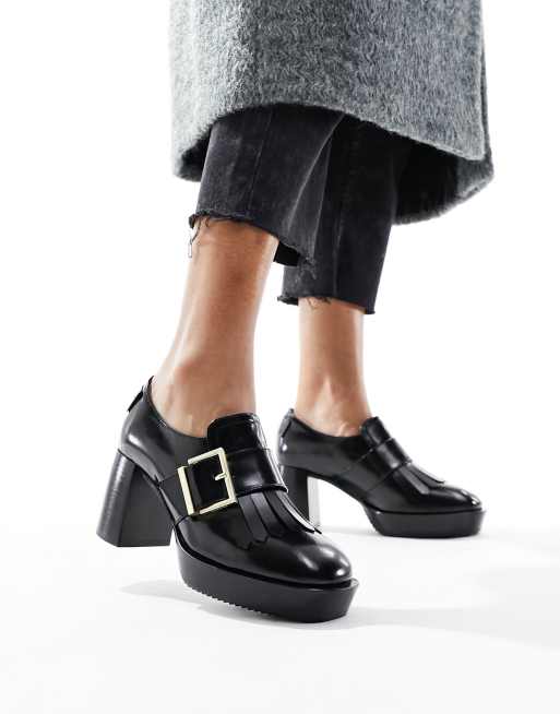 AllSaints - Zia - Mocassins à talon en cuir ultra brillant - Noir