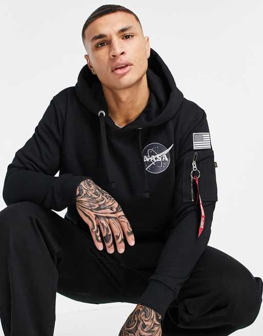 Alpha Industries - Sweat à capuche coupe classique avec imprimé navette spatiale NASA au dos - Noir