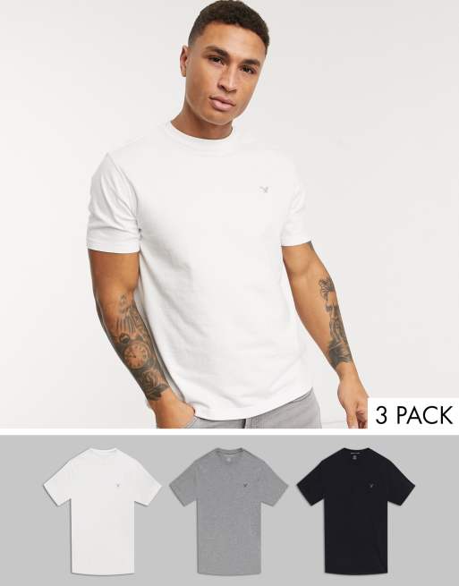 American Eagle - lot de 3 t-shirts ras de cou - Blanc/gris/anthracite