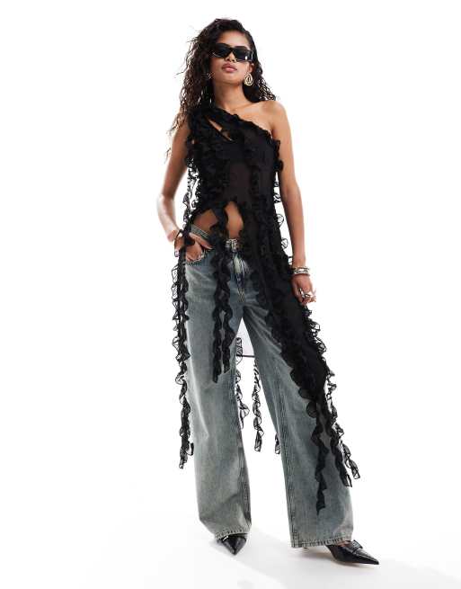 Amy Lynn - Suki - Top transparent en mousseline à volants - Noir