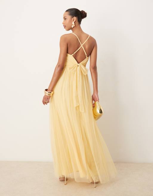 Anaya - Robe longue à bretelles fines - Jaune pâle