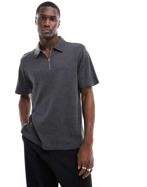 Another Influence - Polo zippé d'ensemble en jersey texturé - Gris foncé