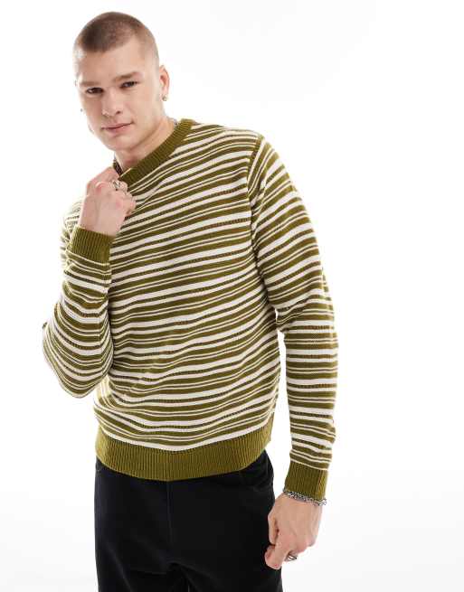 Another Influence - Pull rayé à encolure ronde - Kaki