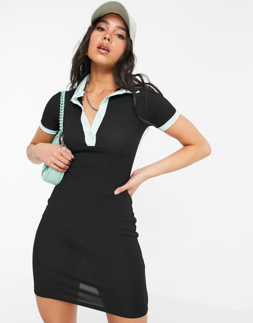 Another Reason - Robe polo courte à col contrastant et texture côtelée