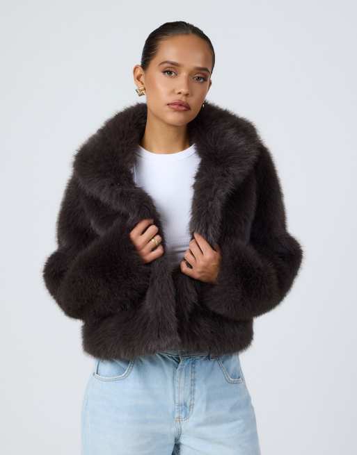 Aria Cove - Manteau court en fausse fourrure avec col - Anthracite