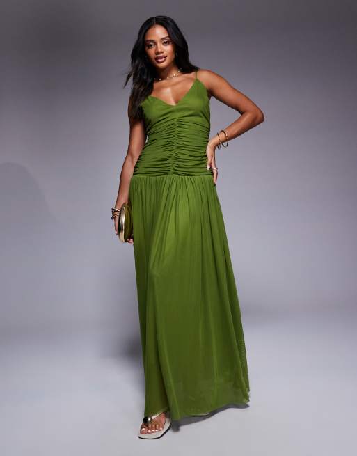 Aria Cove - Robe longue à col en V et taille basse plissée - Vert