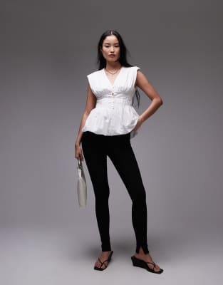 ARKET - Blouse en popeline de coton pur à nervures avec taille corsetée - Blanc