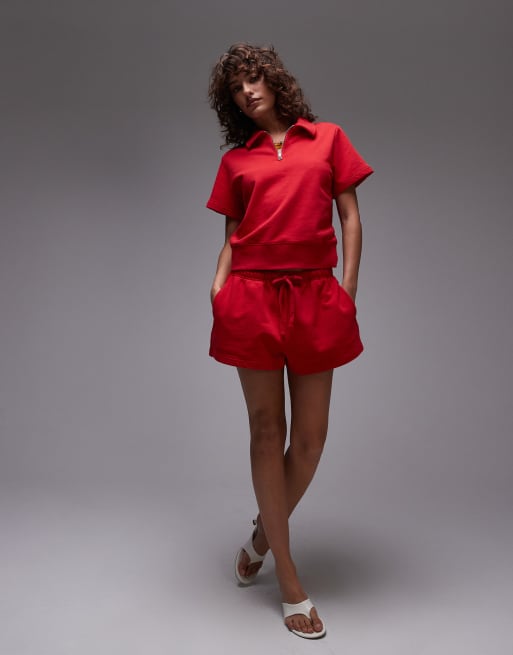 ARKET - Ensemble en coton avec short et polo - Rouge