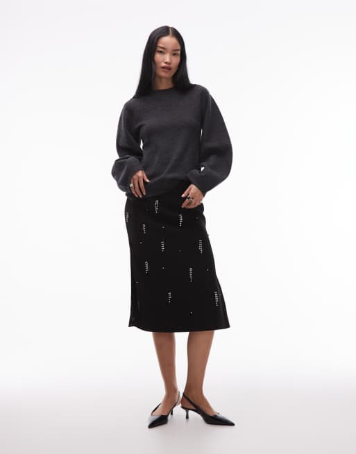 ARKET - Jupe mi-longue à franges de cristaux - Noir