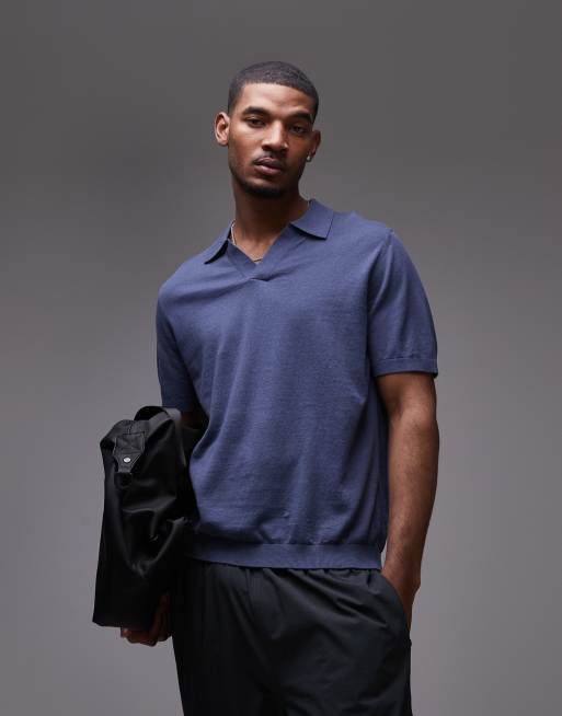 ARKET - Polo à manches courtes en maille de coton et de lin - Bleu marine