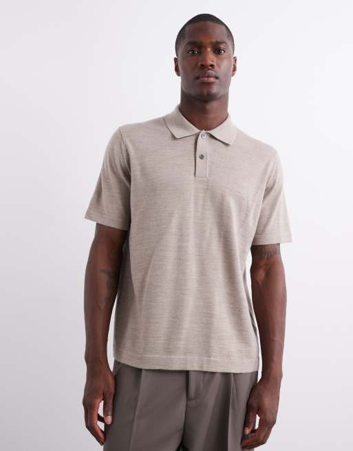 ARKET - Polo manches courtes en maille de laine mérinos - Beige clair