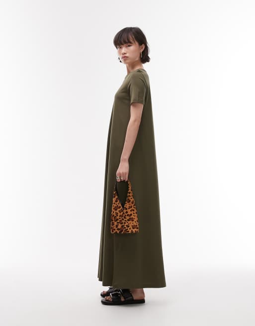 ARKET - Robe longue droite en pur coton à manches courtes - Kaki