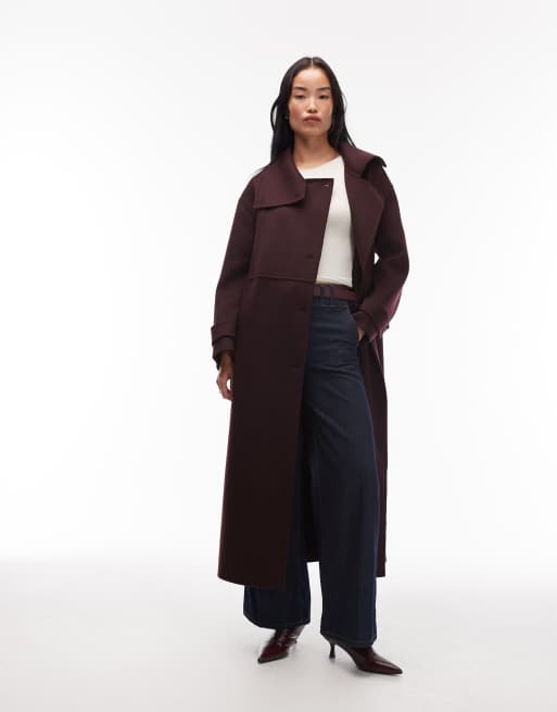 ARKET - Trench-coat long en laine à ceinture et fentes latérales - Bordeaux prune