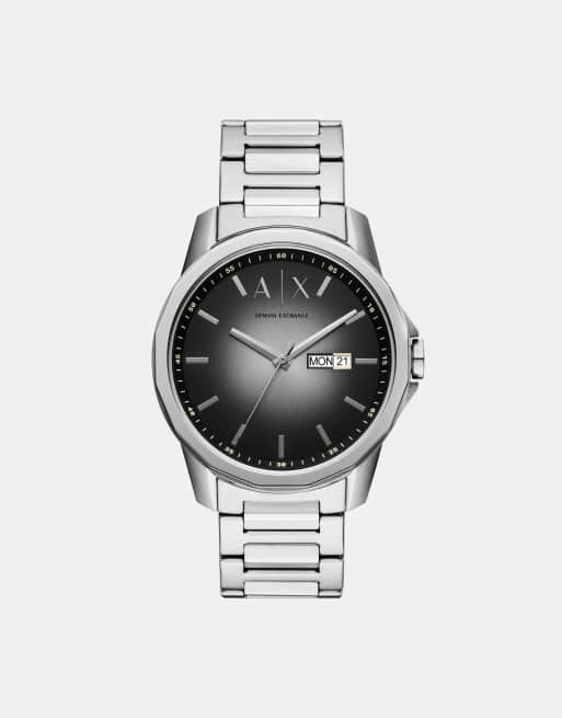 Armani Exchange - Banks - Montre à trois aiguilles avec cadran jour et date en acier inoxydable - Argenté - AX1764