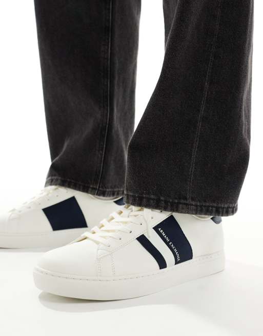 Armani Exchange - Baskets avec bande à logo sur le côté - Blanc et bleu marine