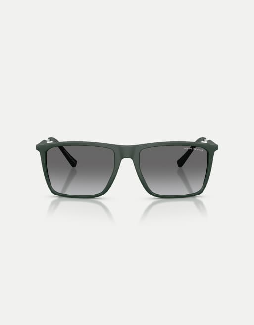 Armani Exchange - Lunettes de soleil carrées avec verres gris - Vert foncé mat