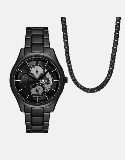 Armani Exchange - Multifunction - Parure montre et collier en acier inoxydable - Noir