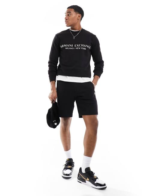 Armani Exchange - Short d'ensemble molletonné à logo linéaire - Noir