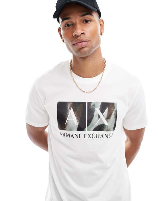 Armani Exchange - T-shirt avec imprimé camouflage sur la poitrine - Blanc