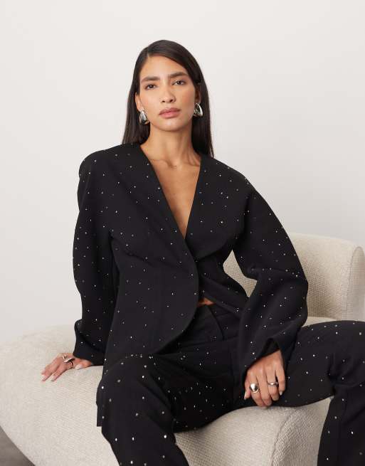 ARRANGE - Blazer d'ensemble élégant à manches ovoïdes et strass thermocollés - Noir