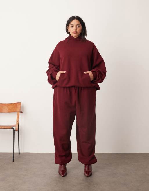 ARRANGE Curve - Ensemble épais oversize de qualité supérieure avec sweat à capuche et pantalon de jogging - Merlot