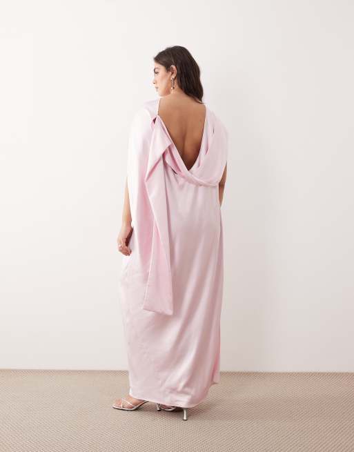 ARRANGE Curve - Robe longue en satin à col bénitier et foulard drapé - Rose clair