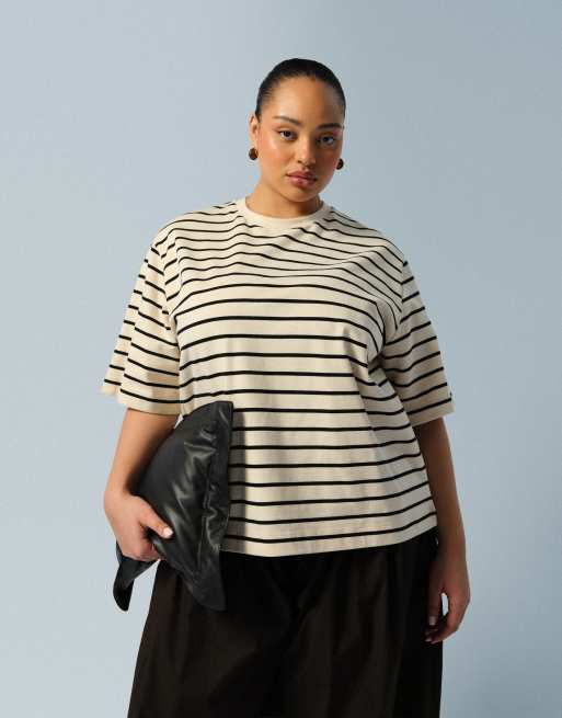 ARRANGE Curve - T-shirt à rayures oversize en tissu épais de qualité supérieure - Crème
