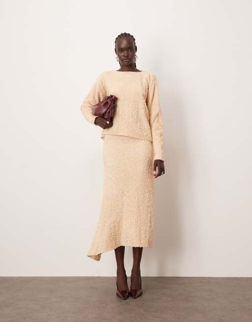 ARRANGE - Jupe d'ensemble à ourlet asymétrique en velours orné de sequins - Crème