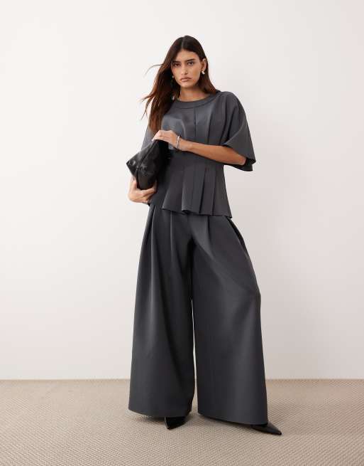 ARRANGE - Pantalon d'ensemble ample et élégant à taille plissée - Anthracite