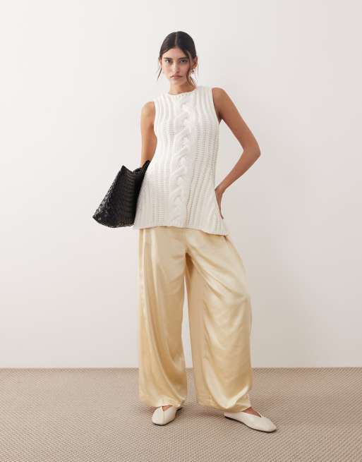 ARRANGE - Pantalon large en satin - Crème