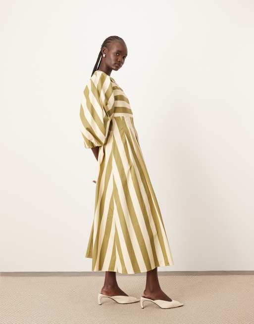ARRANGE - Robe ample mi-longue avec détail plissé - Rayures olive