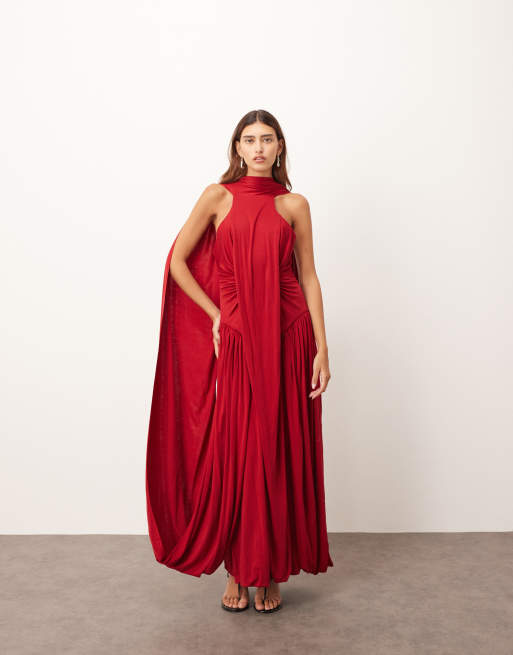 ARRANGE - Robe longue à ourlet drapé et dos ouvert avec détail foulard à l'encolure - Bordeaux