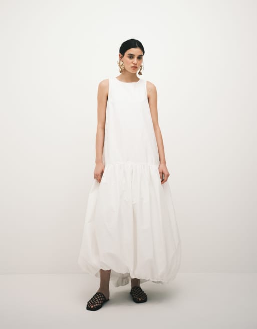 ARRANGE - Robe longue à taille basse et ourlet bouffant - Blanc