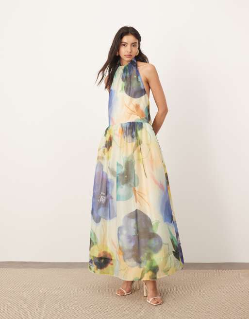 ARRANGE - Robe longue dos nu à nouer avec imprimé fleurs oversize