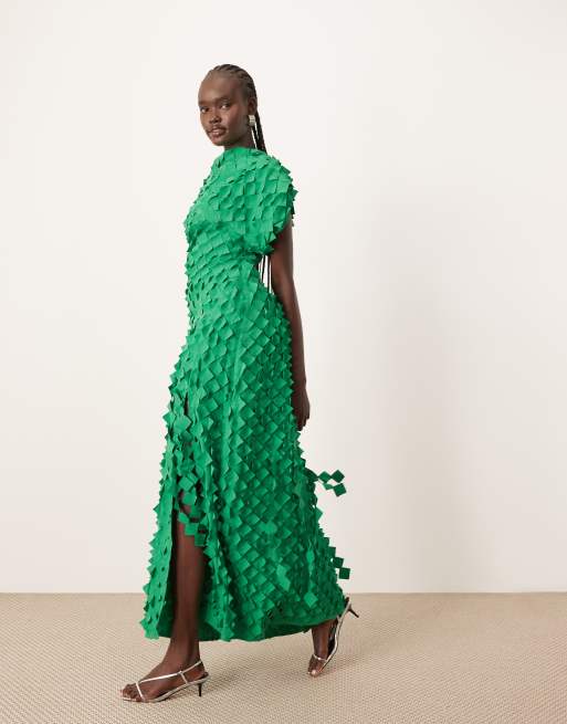 ARRANGE - Robe mi-longue texturée et fendue à découpes laser - Verte