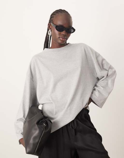 ARRANGE - T-shirt à manches longues oversize en coton - Gris chiné