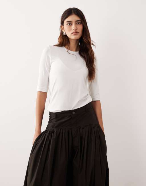 ARRANGE - T-shirt ajusté à manches mi-longues - Blanc