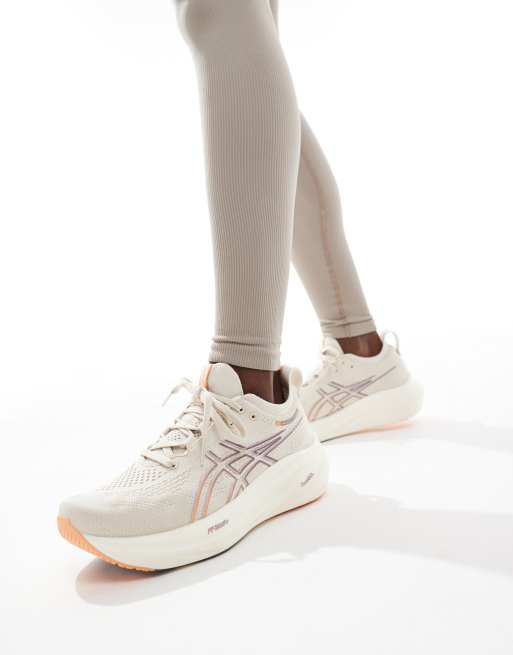 Asics - Gel-Nimbus 26 - Baskets de course neutres - Blanc cassé et orange