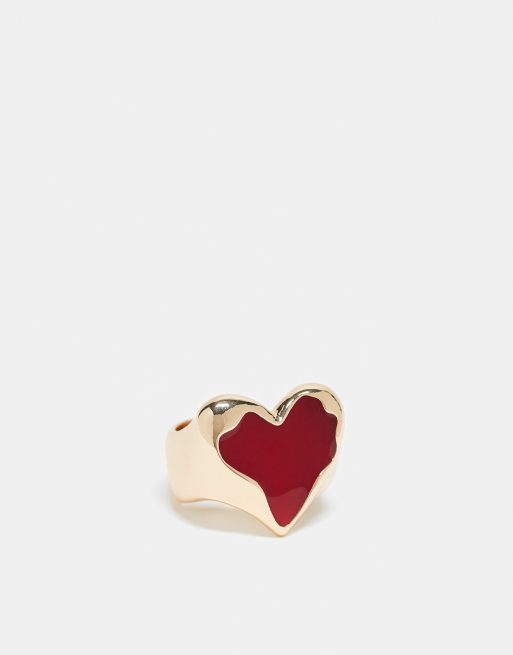ASOS DESIGN Curve - Bague avec cœur en résine - Doré/rouge