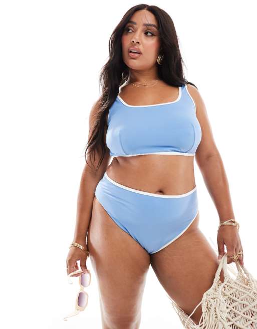 ASOS DESIGN Curve - Bikini à liseré contrasté - Bleu poudré