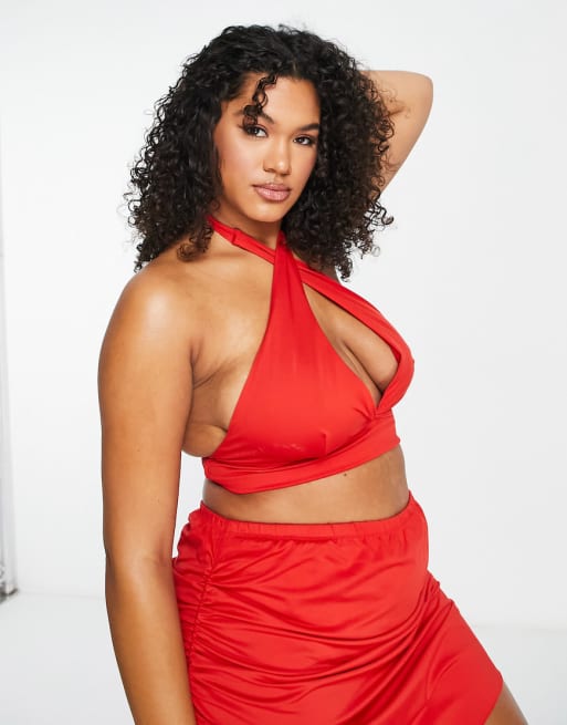 ASOS DESIGN Curve - Bikini dos nu avec bande de maintien - Rouge