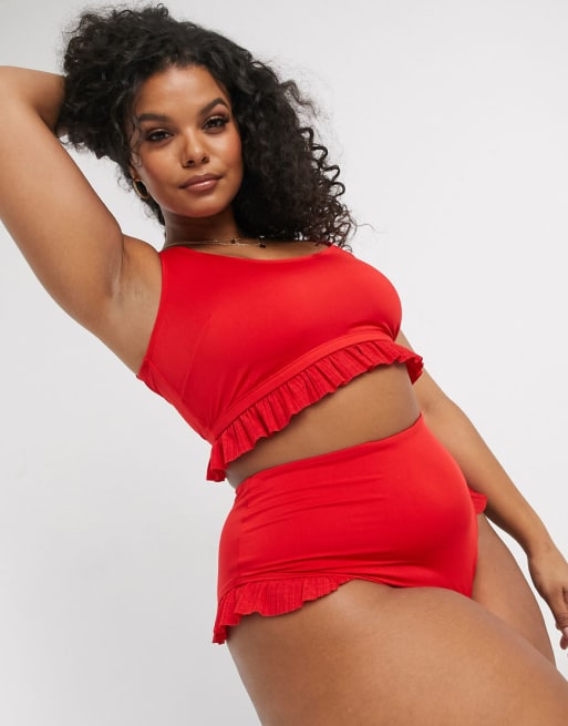 ASOS DESIGN Curve - Bikini volanté plissé - Rouge