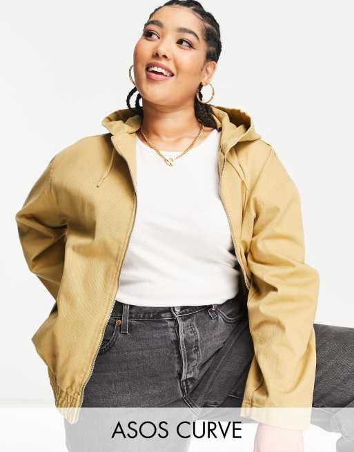 ASOS DESIGN Curve - Bomber oversize en toile - Taupe