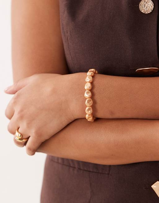 ASOS DESIGN Curve - Bracelet en perles fantaisie avec fermoir en T - Doré