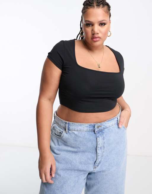 ASOS DESIGN Curve - Brassière courte à encolure dégagée - Noir