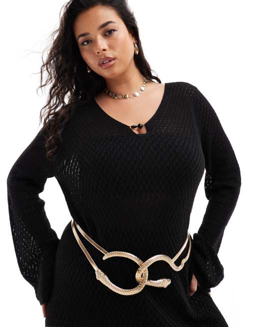 ASOS DESIGN Curve - Ceinture chaîne extensible pour taille et hanches avec détail serpent - Doré