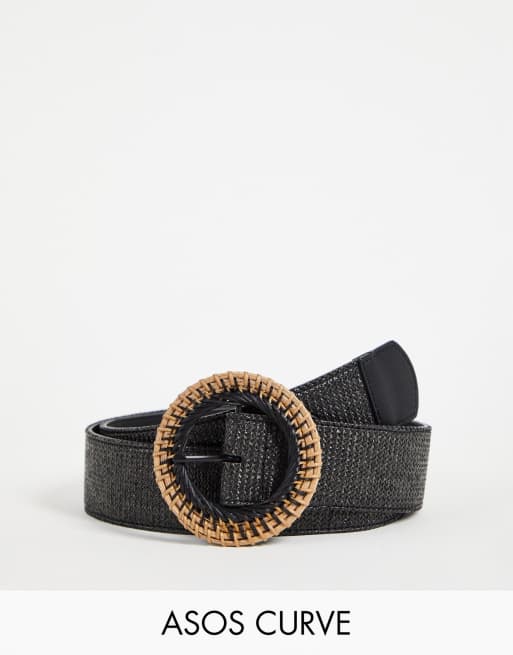 ASOS DESIGN Curve - Ceinture taille et hanches en paille avec boucle en rotin - Noir