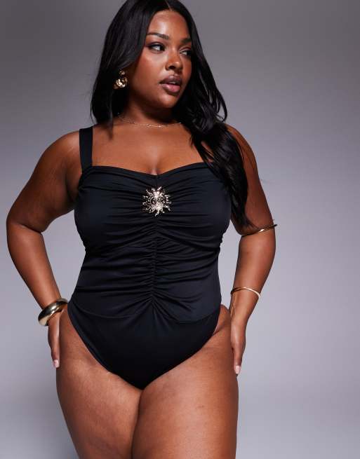 ASOS DESIGN Curve - Celina - Maillot 1 pièce avec finition tourbillon - Noir