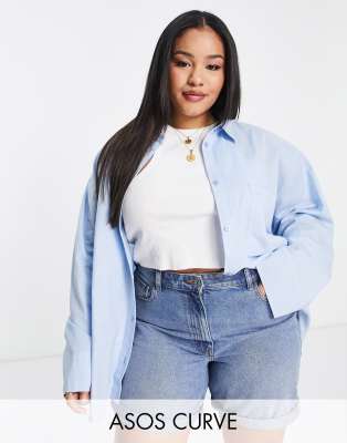 ASOS DESIGN Curve - Chemise oversize en lin à ourlet oblong - Bleu